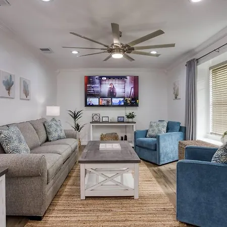 Your Seaside Sanctuary On Ocean Drive Awaits bietet eine perfekte Flucht an der Küste, wo die sanften Wellen des Golfs von Mexiko direkt vor der Tür warten. Dieses Hotel vereint Komfort und Stil und ermöglicht es Gästen, sich in einer entspannten Atmosphäre zu entspannen und den Strand in vollen Zügen zu genießen.